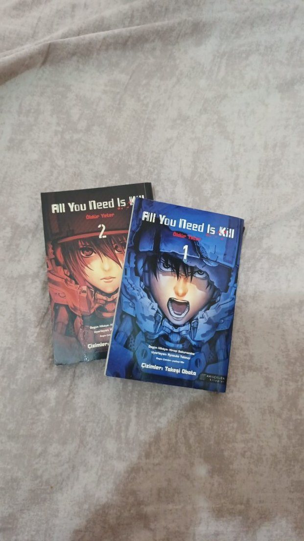 All You Need Is Kill manga seti, 1. ve 2. ciltleri ile yoğun bilim kurgu aksiyonu ve detaylı çizimlere sahip.