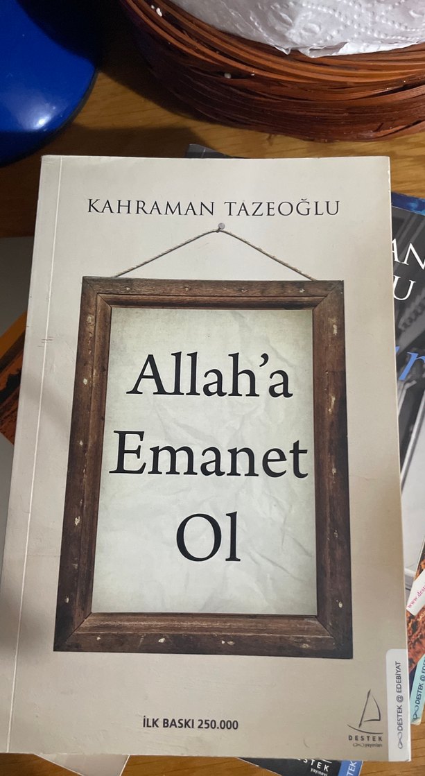 Kahraman Tazeoğlu'nun "Allah'a Emanet Ol" adlı kitabı, sade bir kapak üzerinde çerçeveli başlıkla sunulmaktadır. Türkçe edebiyat eseridir.