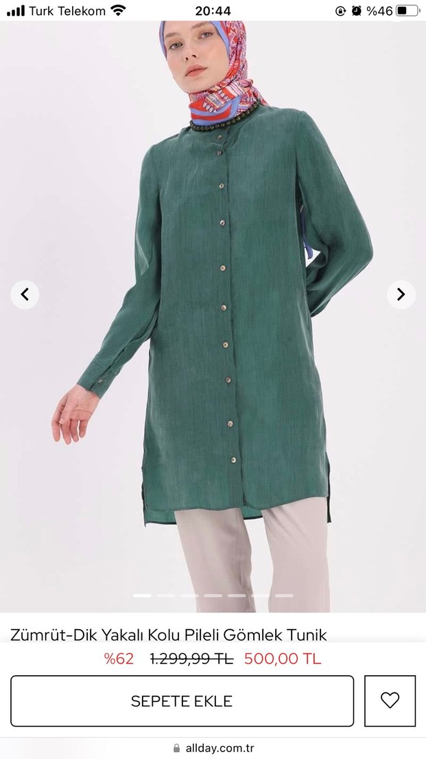 Bohem tarzda, dik yakalı, uzun kollu ve düğmeli önlü zümrüt yeşili gömlek tunik. Normal kesim ve parlak kumaş ile günlük kullanıma uygun. Yarı fiyatına Allday ürünü