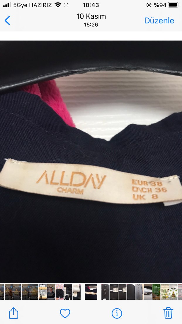 ALLDAY markalı, bej renkte, koyu tonlu vintage bohem tarz erkek rozeti. Üzerinde EUR 38, UK 8 ve DCH 36 beden bilgileri bulunur. ️