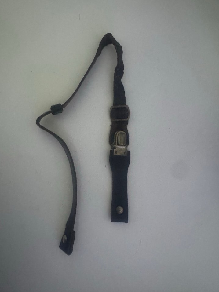 Savaşı dönemine ait Alman Stahlhelm miğferleri için orijinal deri çene kayışı satılıktır. M35, M40 ve M42 modelleri ile uyumludur. Metal tokası ve bağlantı parçaları tamdır. Deri yumuşak ve sağlamdır, yaşına bağlı doğal kullanım izleri mevcuttur.