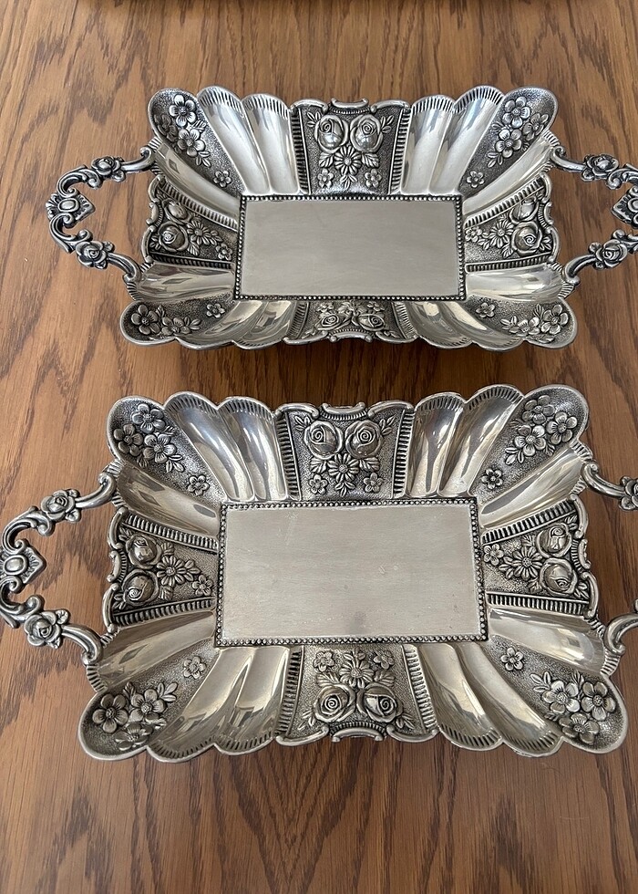 Orijinal Alman gümüşüdür. Fotoğrafları dikkatlice inceleyiniz. Pazarlık payı vardır. 2 sinin toplu fiyatıdır
