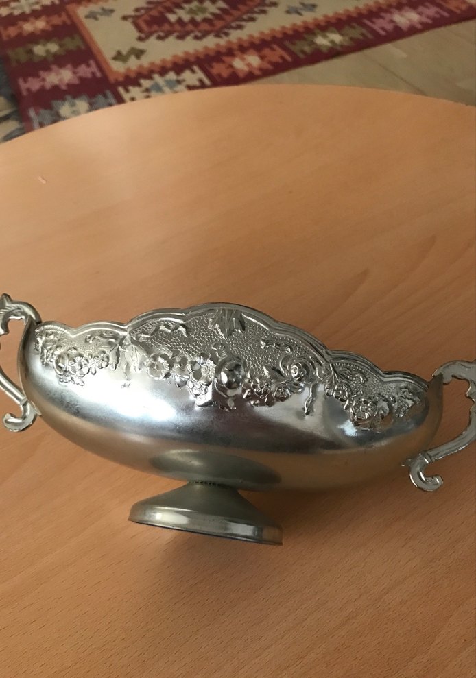 Alman gümüşü kararma yapmaz. Sadece kenarında hafif bir karma var 25x11x9 ebadındadır.