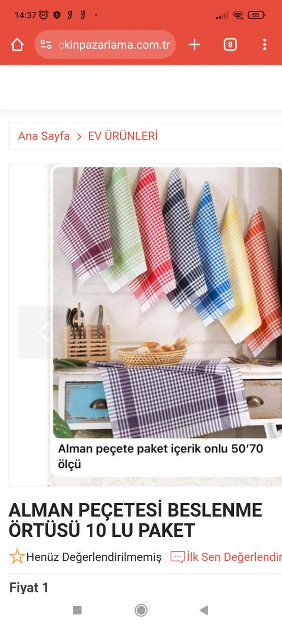 50x70 cm ölçülerinde, kareli desenli, açık renkli çok renkli mutfak peçeteleri paketi. Mutfakta kullanıma uygun.