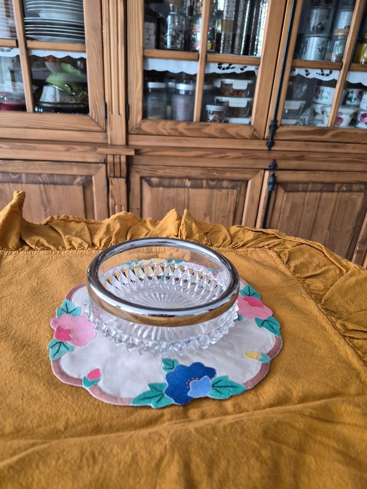 vintage alman kristali kenar kısımları gümüş kaplama.15 cm çapında