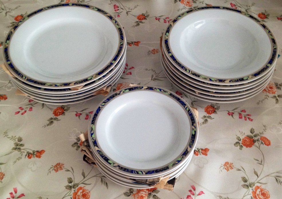 Mavi ve yeşil desenli kenarları olan beyaz yemek tabakları seti, yemek servisi için uygundur. Düz geniş, hafif cukur ve tatli tabagi olmak uzere uc farkli boyutta tabaklara sahip olan hu set Almanya’dan ithal mallar satan bir magazadan alinmistir ve fazla oldugu icin satisa konmustur. Aynisini kendimiz kullaniyoruz ve defalarca bulaşık makinasında yıkanmalarına rağmen asla renk solması yaşanmadı. Bu devirde bu kalitede mal bulmak imkânsız gibidir. Kaçırmayın deriz. Teslim yeri Bostanci ama İstanbul ici bir noktaya getirilebilir. Kargoya verilemez, kirilma riskinden dolayi. Pazarlik payi vardir.