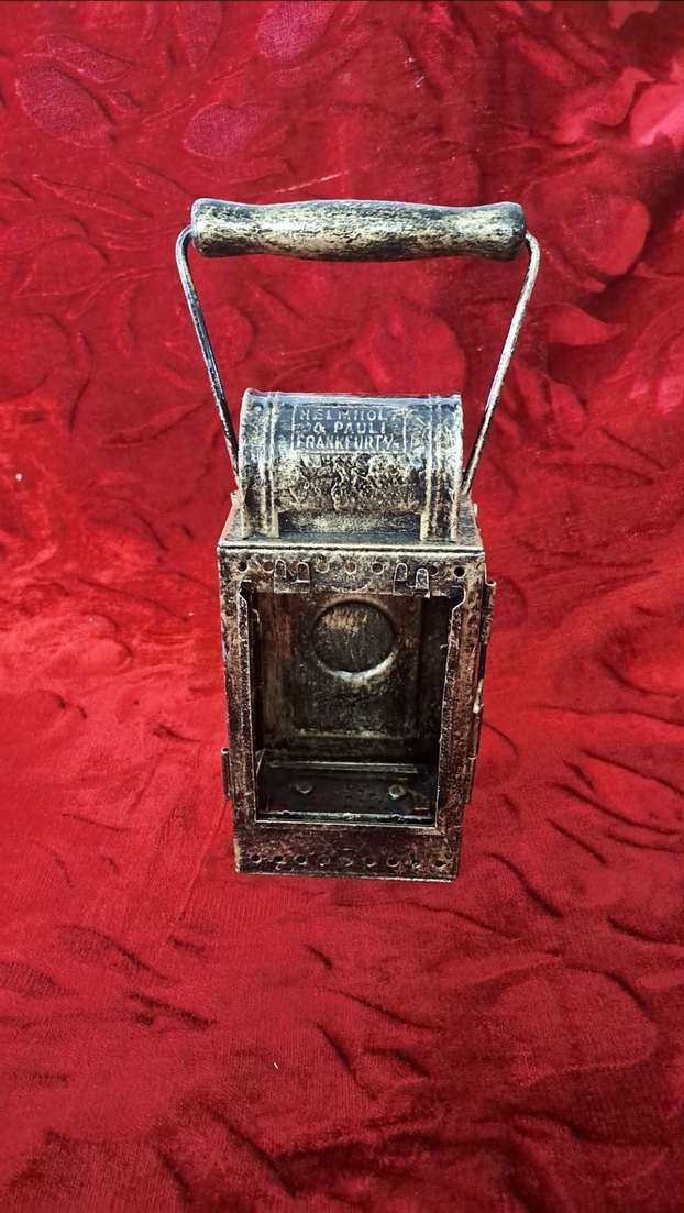 Koyu altın rengiyle vintage tarzda, sağlam saplı ve ayrıntılı tasarıma sahip dekoratif fener.