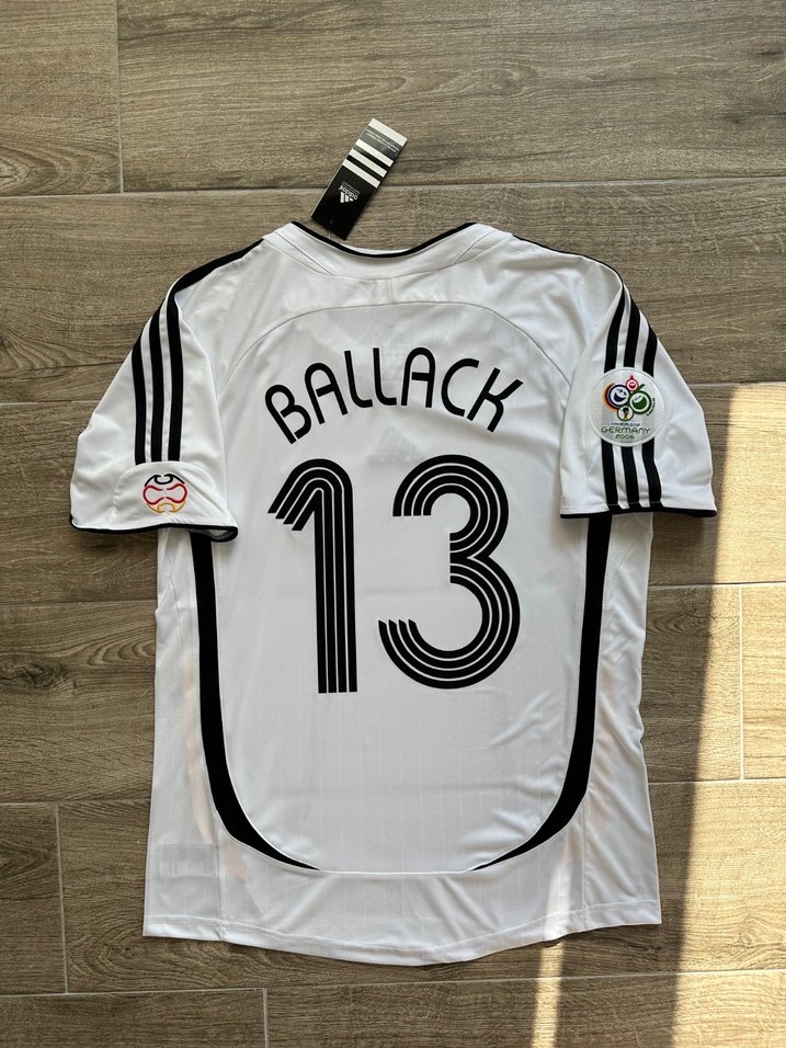 Almanya 2006 Dünya Kupası “Michael Ballack” forması. Sıfır ve etiketlidir.. Ürünün kolunda kabartmalı 2006 Dünya Kupası Patch bulunmaktadır. Alman Panzeri Ballack’ın popüler olduğu zamanlarda giydiği harika bir formadır. Sıfır poşetinde gönderim yapılacaktır müthiş bir koleksiyon ürünüdür. S - M - L - XL - XXL Bedenleri mevcuttur.