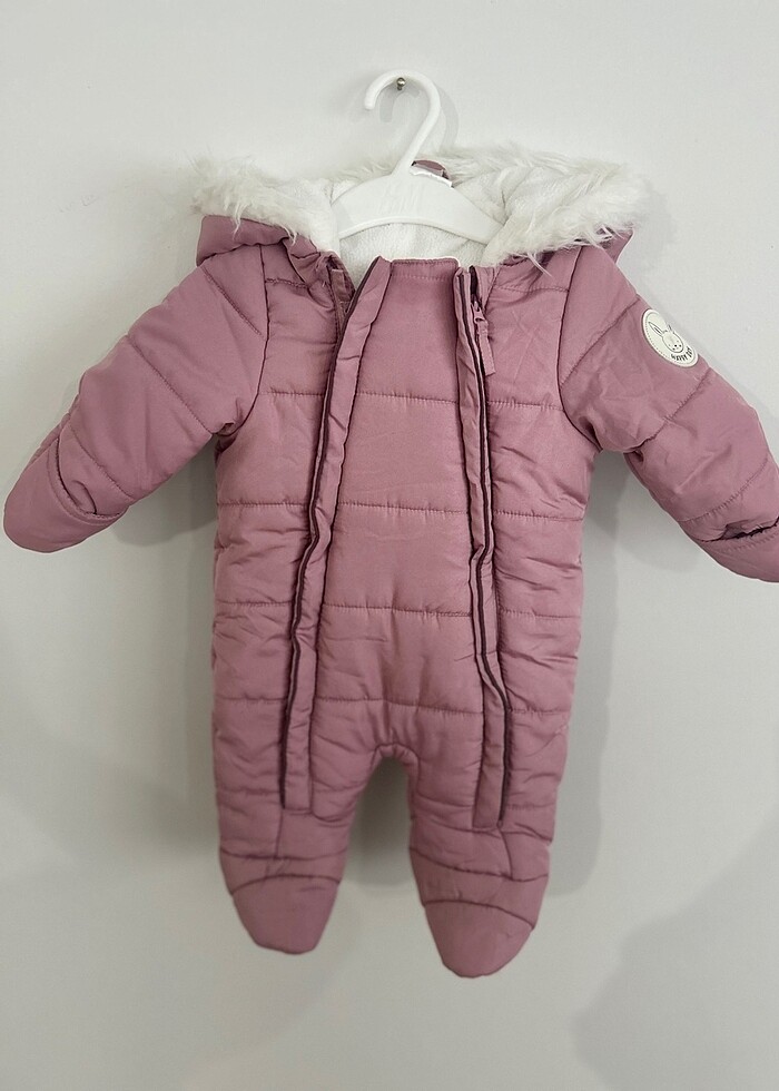 Kaliteli bir ürün, rahat ve sıcak tutuyor. Renk: pembe, içi beyaz/pembe Boy: 62 cm, 0-3 ay Uni Baby deterjan (parfümsüz, hipoalerjeniktir) kullanarak 40 derecede yıkandı. Herhangi leke, yırtık vb. YOK! Evcil hayvan olmayan bir evde kullanıldı.