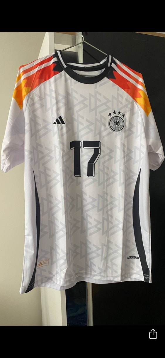 Beyaz, baskılı, kısa kollu, yuvarlak yakalı erkek forması. Sentetik kumaştan, 17 numara detaylı, sportif ve sokak stili uyumlu. ⚽ beden L