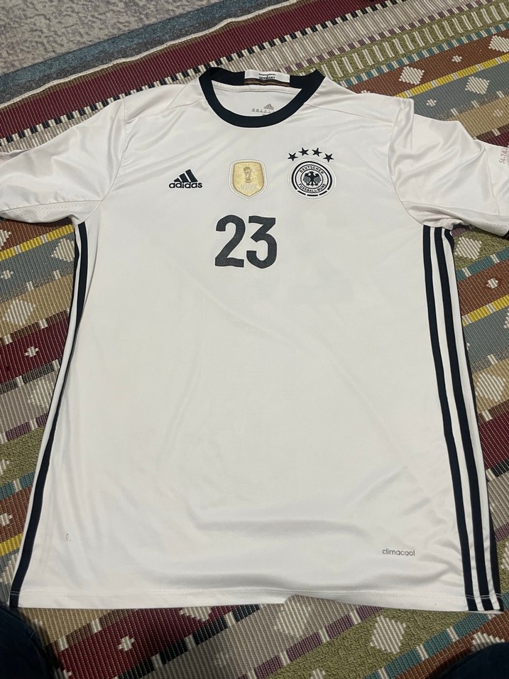 Beyaz, kısa kollu, bisiklet yaka Adidas erkek spor tişörtü, 23 baskılı, nefes alabilen sentetik kumaştan, spor ve sokak stiline uygun. ⚽