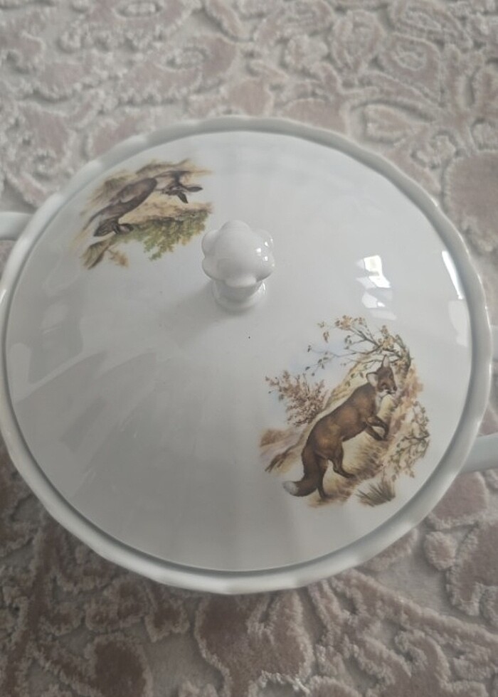 Uygulama tüm parcalari ekleme onay vermiyor. Bu kapaklı çorba sunum tenceresinin yanında 6 tane düz tabakları var. Diğer post.a bakınız. Bir sunum tenceresi ve 6 tabak beraberinde satılıyor. Yüksek kalite Eschenbach porselen. Hiç kullanılmadı.