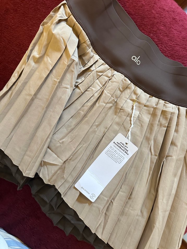Yurtdışından alo marka sıfır etiketli. Bej renkli, sentetik kumaştan yapılmış, baskılı desenli ve bol kesim pliseli midi etek. Günlük kullanım için sokak giyimi ve athleisure tarzına uygundur.