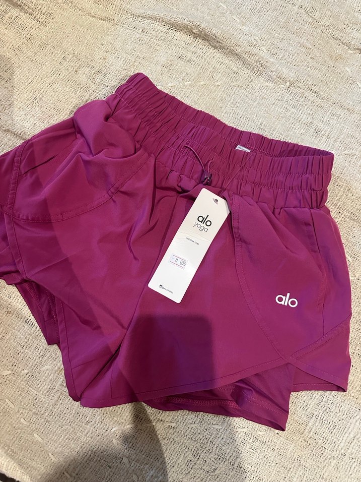 Alo markan kadın Mor Mini Spor Şort ikili Elastik Bel