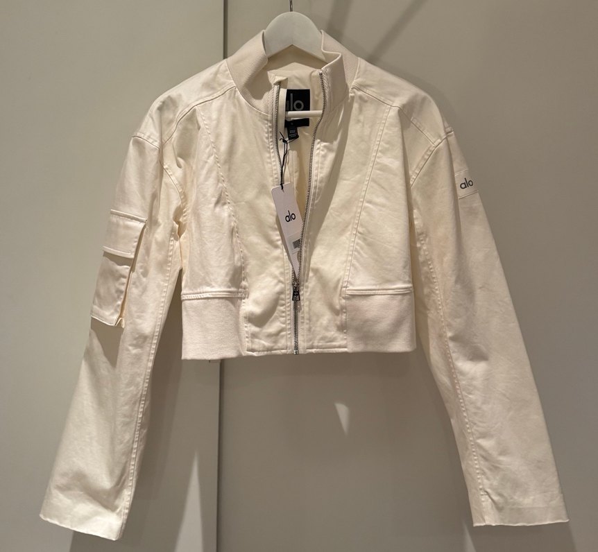 S beden. Beyaz, fermuarlı, uzun kollu kadın ceket. Pamuklu kumaştan, fitted kesim ve notched lapel yaka ile günlük kullanım için uygun.