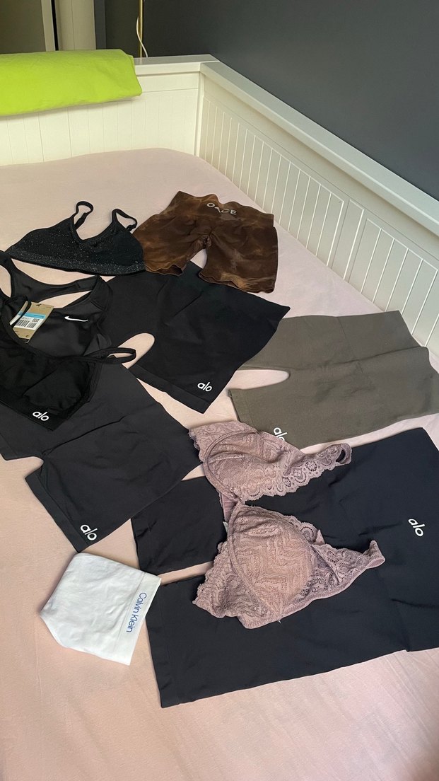 Bu set, atletik kullanıma uygun, desen içermeyen siyah kısa kadın iç giyim ürünlerini içerir. Rahat ve sade normcore tarzında tasarlanmıştır. Almak istediğiniz ürün için ilan açtırabilirsiniz
