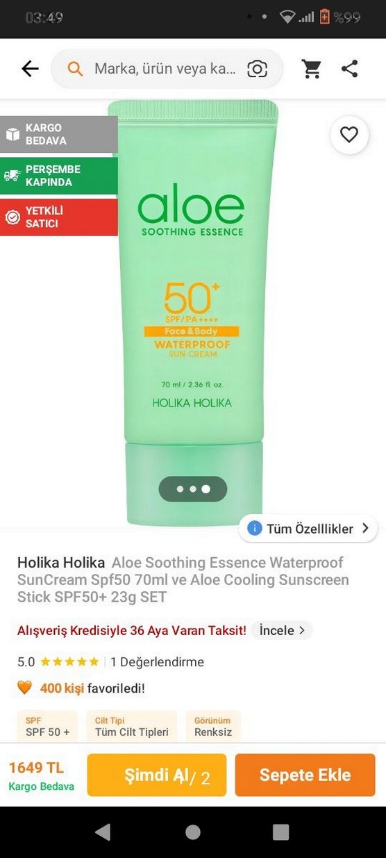 Aloe Güneş Kremi