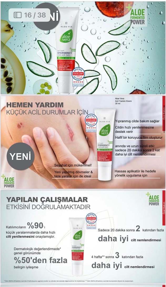 Aloe Vera el kremi yıpranmış cildi bakım sağlar, cilt yenilenmesini destekler ve hafif koruyucu film oluşturur. 20 dakika sonra etkisi artar, küçük yaralanmalar ve yeni dövmeler için uygundur.