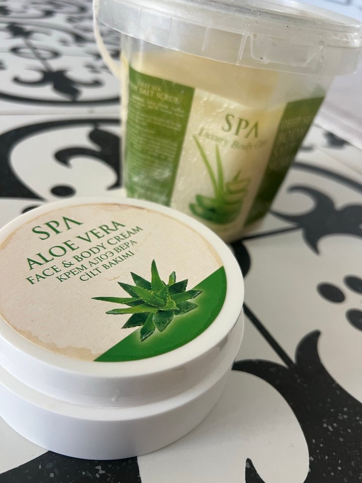Aloe vera içeren vücut kremi, cildi nemlendirir ve yatıştırıcı etki sağlar. Çok az kullandım 1 kiloluk pakette