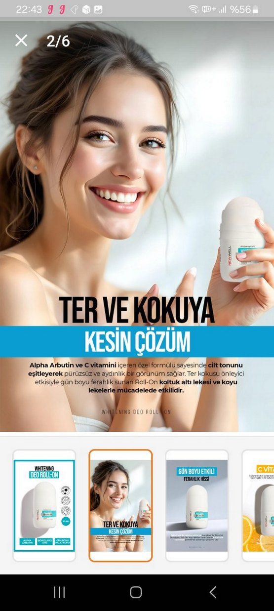 Alpha Arbutin ve C vitamini içeren Roll-On Deodorant