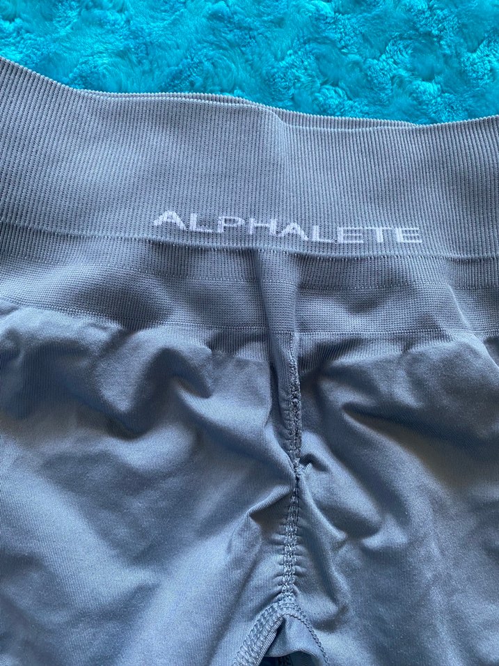 Alphalete markalı, elastik sentetik kumaştan yapılmış, mavi-gri renkte, normal boyda, deseniz kadın spor tayt. Sokak modasına uygun ve rahat bir kesime sahip. ♀️