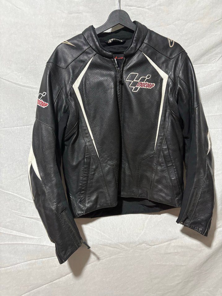 Siyah renkli, fermuarlı, deri biker ceket. Notlu yaka ve uzun kollu, günlük kullanıma uygun, dar kesim. Marka Alpinestars gp110 Beden 54 oldukça iyi durumdadır Omuz dirsek sırt korumalıkları mevcuttur Diyer ilanlar için profilimi inceleyebilirsiniz