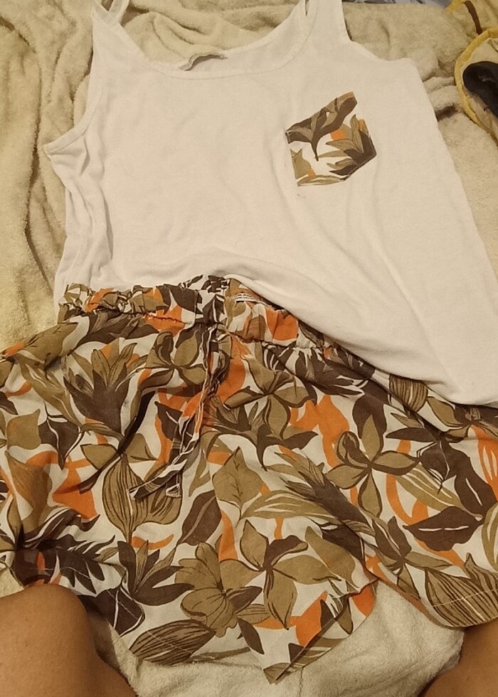 Dışarda giyilir yazlık takım S beden giyiyorum ama L beden oturdu üstüme