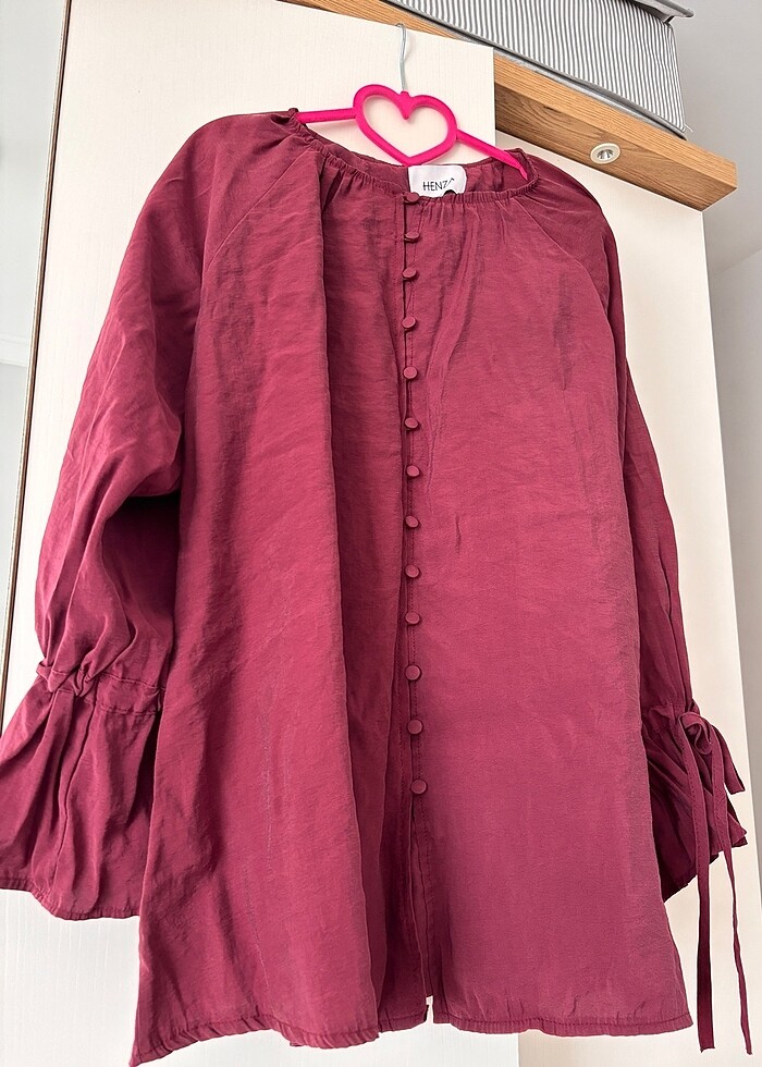 1 kes giyildi. Rahat ve sorunsuz takım. Henza butiğine ait. Vişne renk