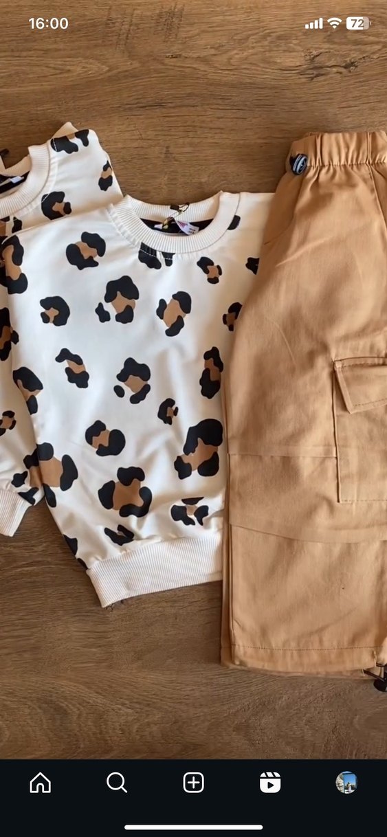 Leopar desenli tişört ve kargo cepli pantolon lastiklidir.
