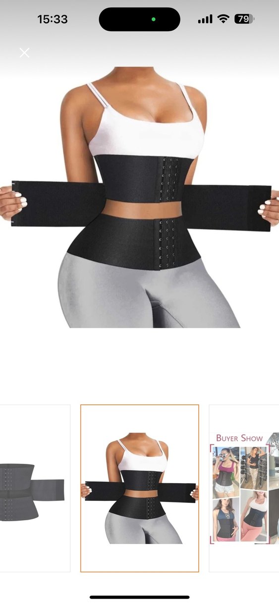 Siyah, midi boy, vücuda oturan hemşire korsesi, ön kancalı kapama ve ayarlanabilir yan bantlara sahiptir.
