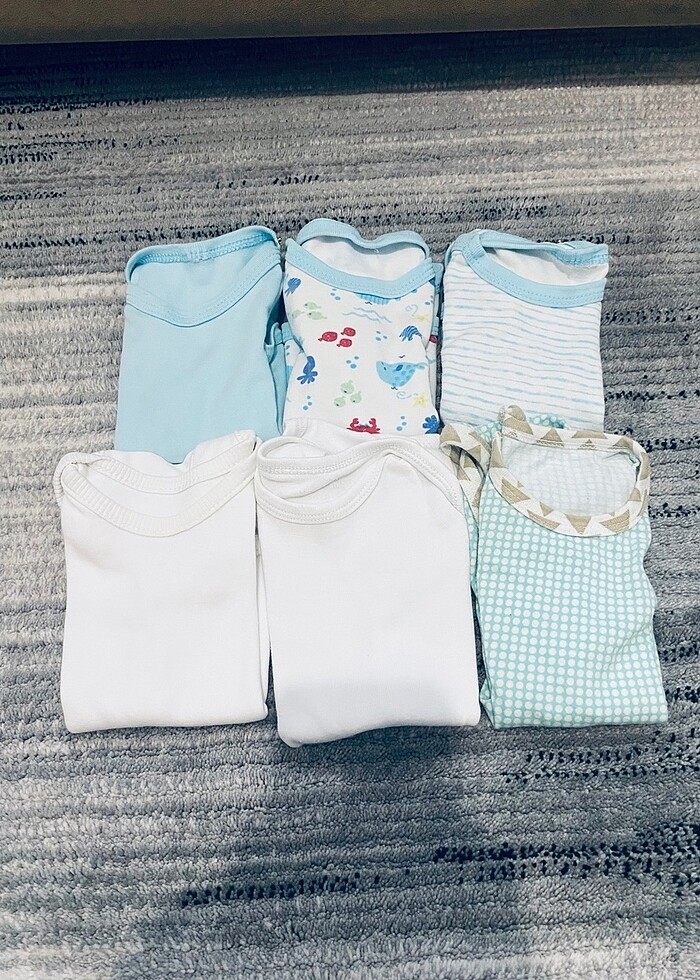 Çok çok iyi durumdalar.H&M Ebebek karışık.Temiz ve az kullanıldılar, 6 parça, diğer ürünlerime de bakmadan geçmeyin, toplu alışverişlerde ekstra indimriö yapıyorum ,ihtiyacı olan birilerine gitsin, tüm teklifleri kabul ediyorum