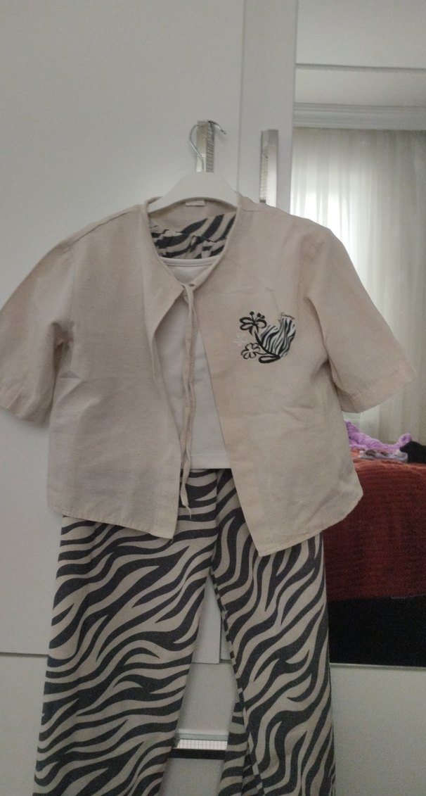 Gri ve kahverengi tonlarda zebra desenli, bol kesim çocuk uzun pantolon. Yumuşak sentetik kumaştan, pile detaylı, günlük sokak stili için uygun. 9 10 yaş