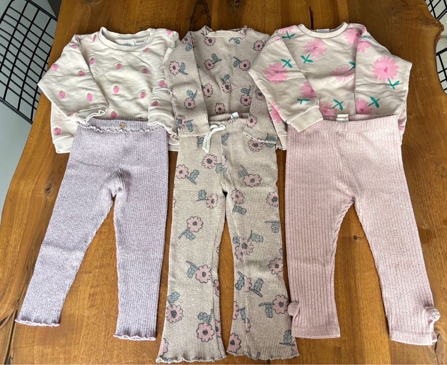 3 takımın toplam fiyatıdır. Minik belirsiz lekeleri vardır. Genel olarak 12-18 ay içindir. Ortadaki takım alt kısmı 18-24 bilerek biraz daha uzun giymesi için almıştım. En sağda ki alt tayt hariç hepsi zaradır. Sadece o koton markadır.