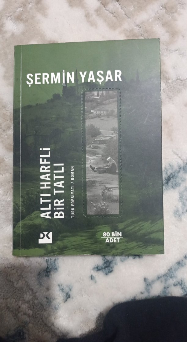 Şermin Yaşar'ın "Altı Harfli Bir Tatlı" adlı Türkçe romanı, 80 bin adet basılmıştır. Yeşil kapakta manzara fotoğrafı yer alır.