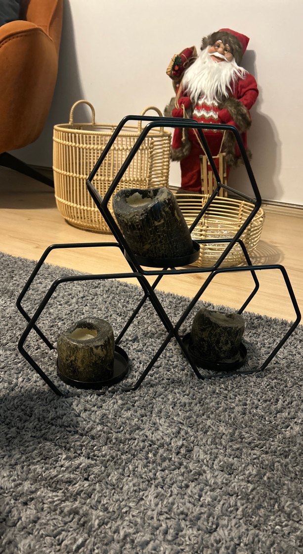 Altıgen Siyah Metal Mumluk ve Siyah Mumlar