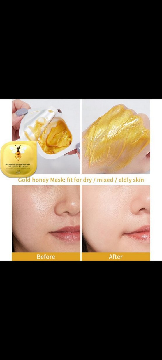 Ünlü kore cilt bakım markası VT'nin gold progloss maskesi kuru, karma ve yaşlı ciltler için uygundur. Cilt dokusunu ve nemini artırır.