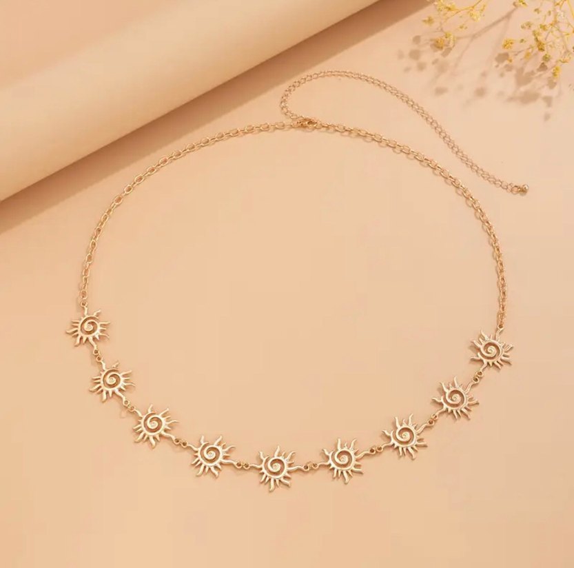 güneş motifleriyle altın renk bel zinciri, Bohem ve retro tarzlar için uygun ☀️ Yeni paketli