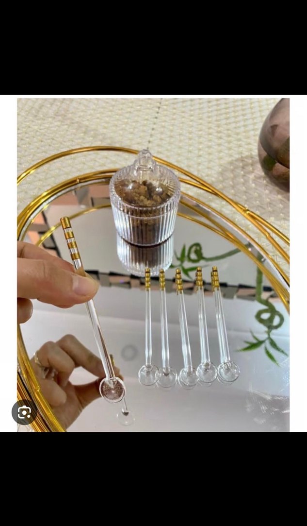 SIFIR ÜRÜN, ambalajıyla yollanacaktır. Altın detaylı, işleme desenli altı adet cam karıştırıcı kaşık seti, bohem tarzına uygun masa takımı aksesuarı. ✨