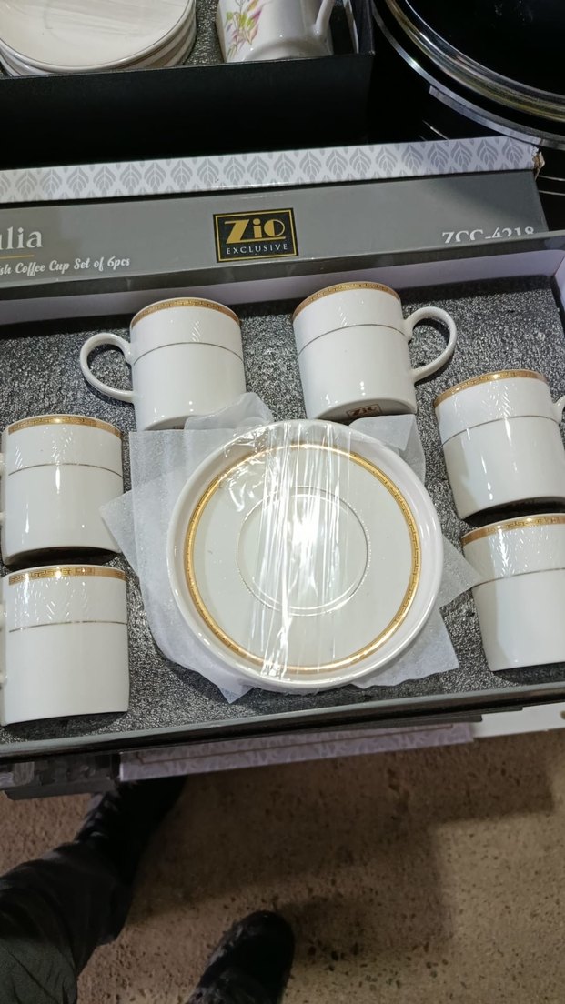 Altın detaylı beyaz kahve fincanı seti, altı adet fincan ve tabağı içerir. Zarif tasarıma sahip, kullanımı rahattır. ☕