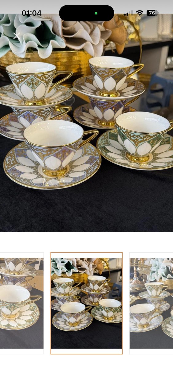 Altın detaylı beyaz porselen fincanlar, çiçek desenli tabaklar ve şık kulplarla tamamlanmış set. ☕ sınırlı sayıda internet fiyatından daha uyguna satıyoruz