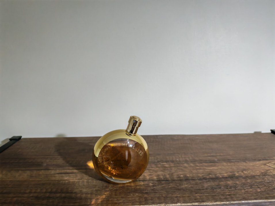 Altın detaylı yuvarlak şişede kadın parfümü, sıcak ve zarif bir koku sunar.