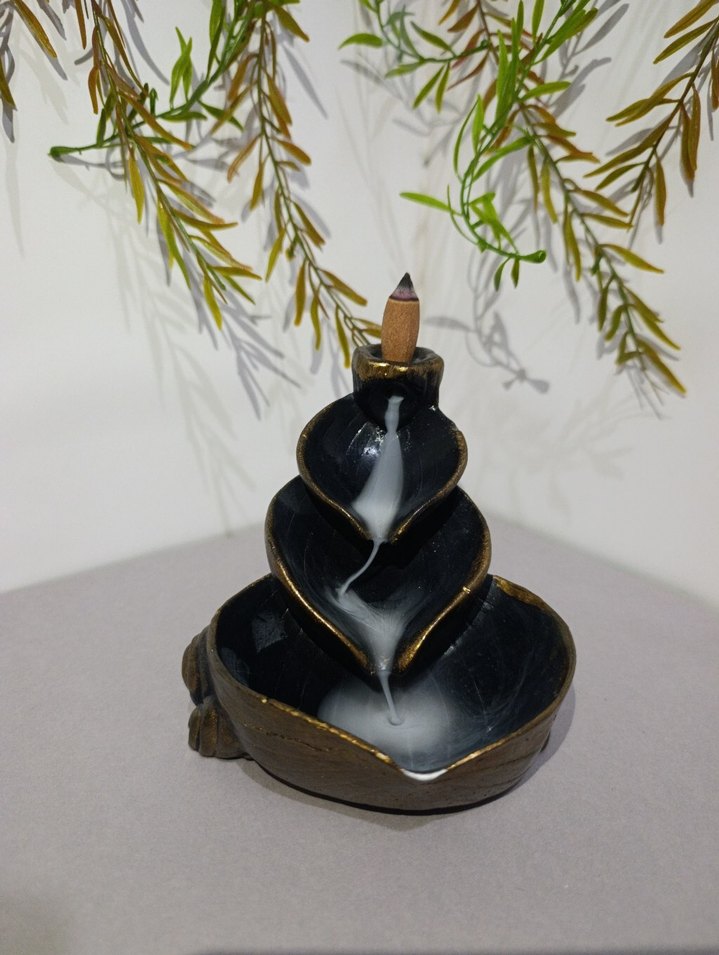 Altın detaylara sahip koyu renkli bu figür, tütsü tutucu olarak kullanılır ve akan duman efekti oluşturur. ️