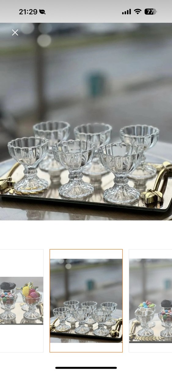 Altın detaylı, ayaklı kristal kadeh seti, tatlı veya içecek sunumları için uygundur. Şeffaf tasarımı şıklık katar.