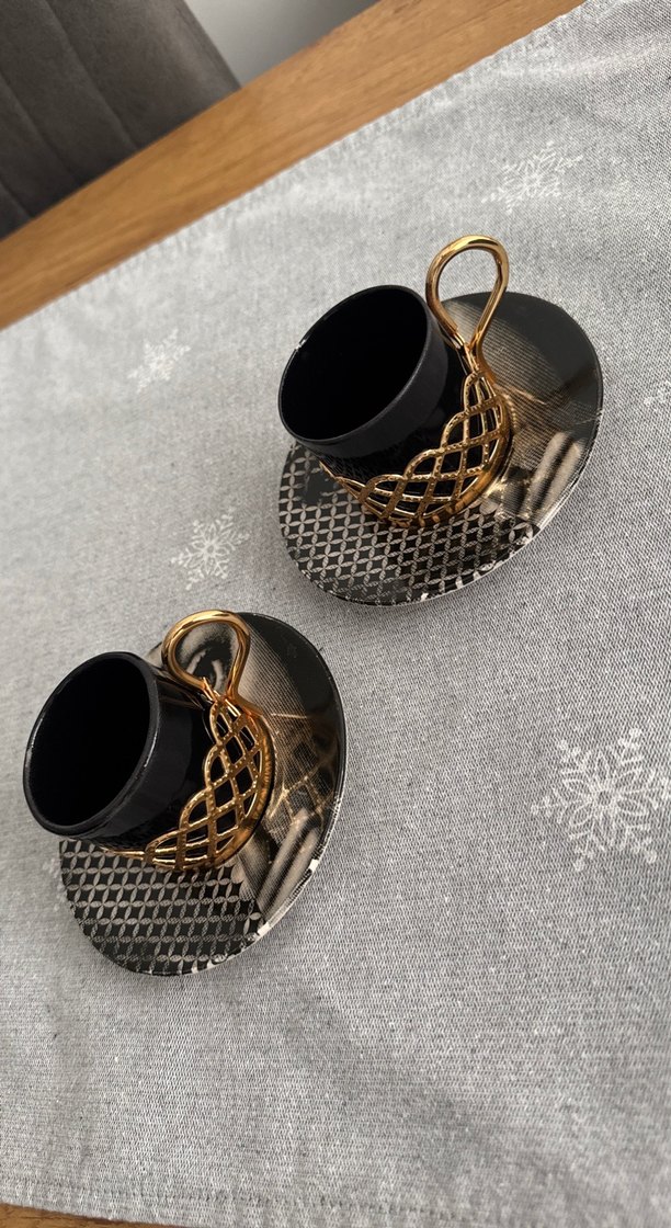 Altın Detaylı Siyah Fincan ve Tabağı Seti