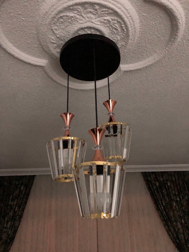 Altın detaylı üçlü avize