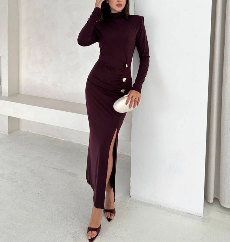 Altın Düğme Detaylı Davet Elbisesi