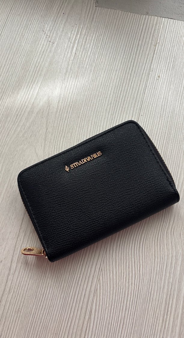 Altın renk fermuara sahip, yılan desenli koyu deri kadın cüzdanı. Günlük iş ve sokak stili için uygundur.