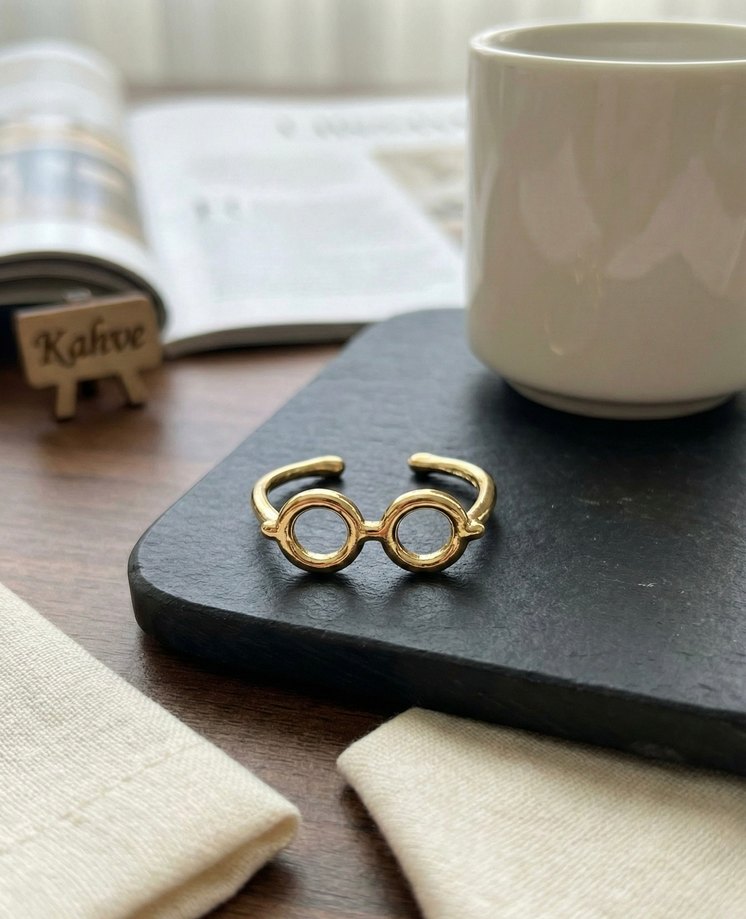 Parlak altın renkli, tokalı ve minimalist tasarıma sahip kadın yüzüğü, klasik zarif ofis stiline uygundur.