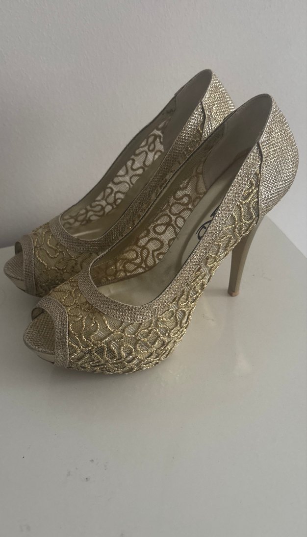 Altın İşlemeli Dantel Detaylı Stiletto Topuk boyu 12 cm