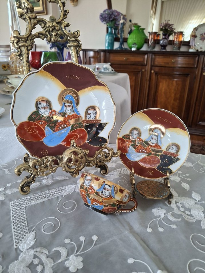 Japon el boyama 24 karat altın işleme...Çay boyu.trio....Pırıl pırıl vitrin ürünü..Antika...